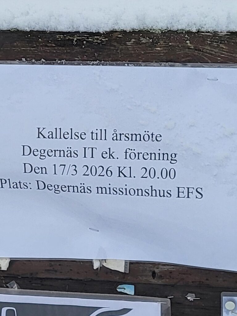 Degernäs IT kallar till årsmöte den 29/3 kl 20.00. Plats EFS Degernäs