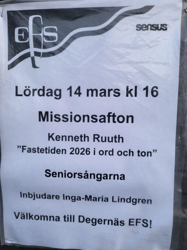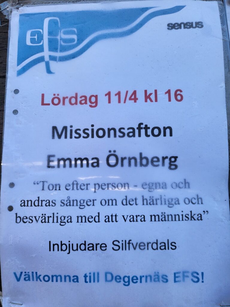 Söndag 10/12 klockan 15.00 på EFS i Degernäs Missionshus.