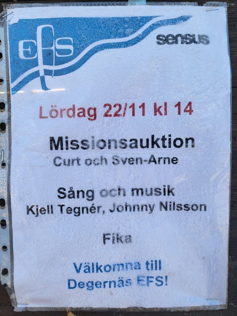 Missionsauktion i Degernäs Missionshus Lördag 22/11 kl 14.00!